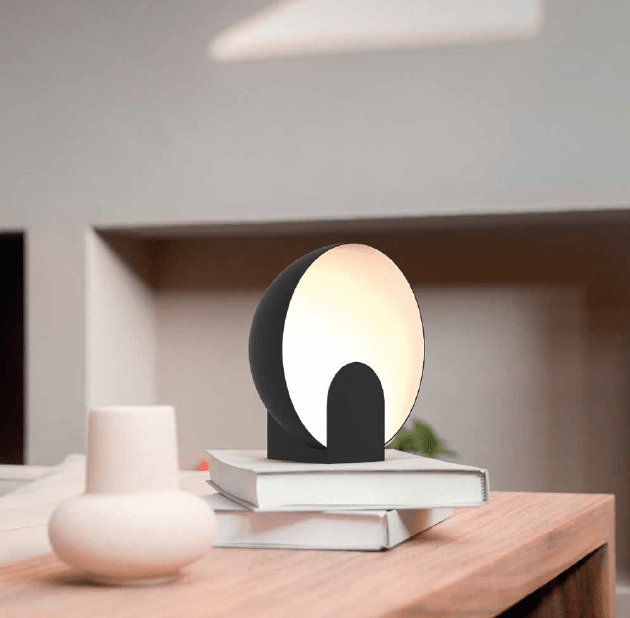 Lampe de table de forme hémisphérique. Elle peut également être combinée avec l’applique murale de la même série . Idéal pour un environnement moderne et attrayant.